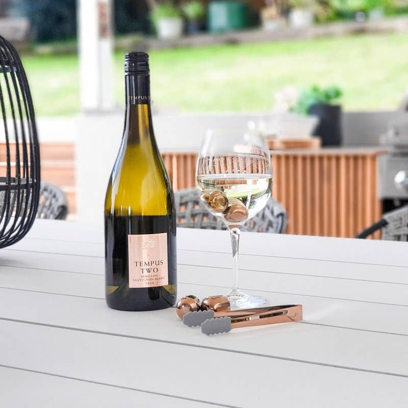 CLINQ'S copper wine pearls keep your wine chilled without watering it down like an ice cube would. Each pearl features a glycerine core within a stainless steel body and food-safe copper pvd finish. Simply place them in the freezer for a couple of hours and they're ready! These reusable ice cubes come with a copper pair of tongs for each drink placement and a velvet pouch for safekeeping.