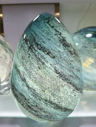 Illuminate your space with the captivating glow of this 21 x 21 x 29.5cm glass lamp. Featuring a stunning mix of aqua, teal, and stone-toned textures, this egg-shaped light creates a soothing ambient glow that instantly transforms any room. Elegant, modern, and full of natural charm, it’s the perfect statement piece for bedside tables, consoles, or living room décor.