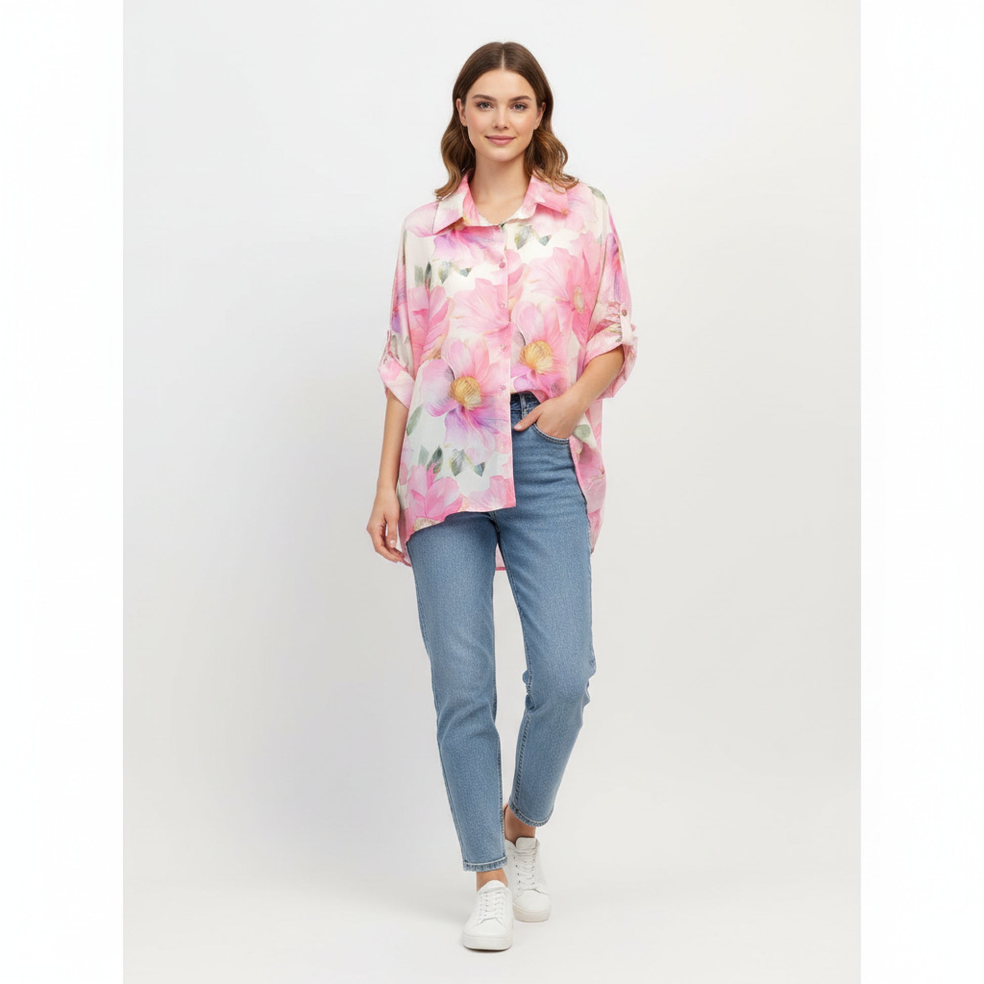 Effortlessly chic and beautifully lightweight, this oversized floral print shirt adds a touch of relaxed elegance to any wardrobe.
